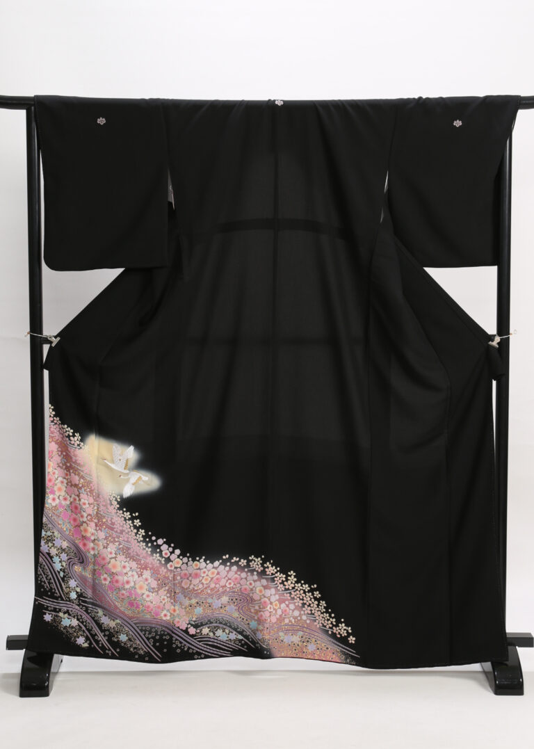 柄:鶴・小花さくら・ピンク